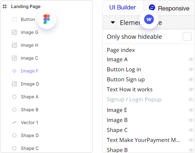 Our Figma to Bubble converter moves all elements into Bubble with a single click.