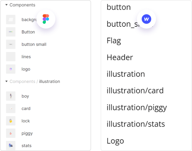 Reusable Components/Symbols are imported into Bubble as Bubble Symbols. Freely re-use those Symbols, just like you've done it in Figma.