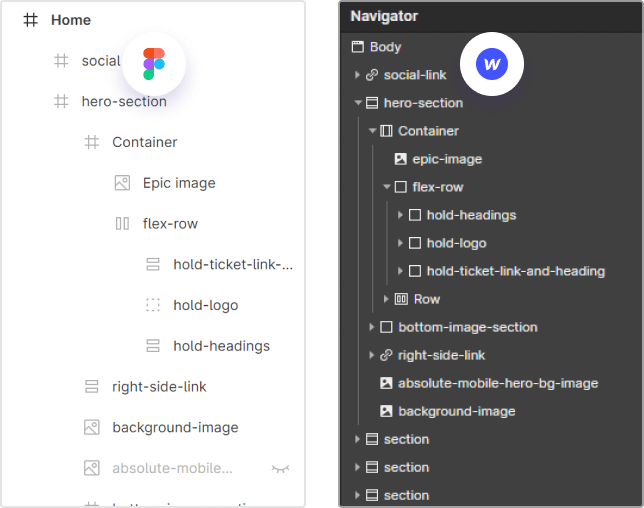 All layers, icons and other elements get converted into the equivalent in Webflow.