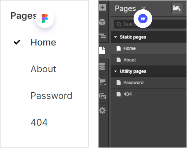 All Pages get directly imported as Pages in Webflow. This makes it easy for you to move your Design to Code within minutes.